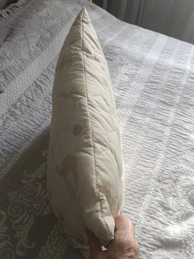 Заказала эту подушку на пробу — и не пожалела ни секунды! Наполнитель очень приятный на ощупь, упругий, но при этом мягкий. Поддерживает шею идеально, никаких болей по утрам — только свежесть и бодрость!