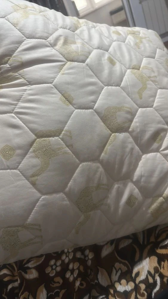Чехол из натуральной ткани, приятный к телу, не вызывает раздражения. Швы аккуратные, всё качественно прошито. Упакована была в плотную плёнку, пришла без повреждений и посторонних запахов.