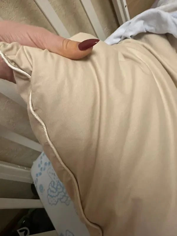 На прошлой подушке у ребенка потела голова сильно, на этой подушке спит пару дней, пока сильной потливости не заметила