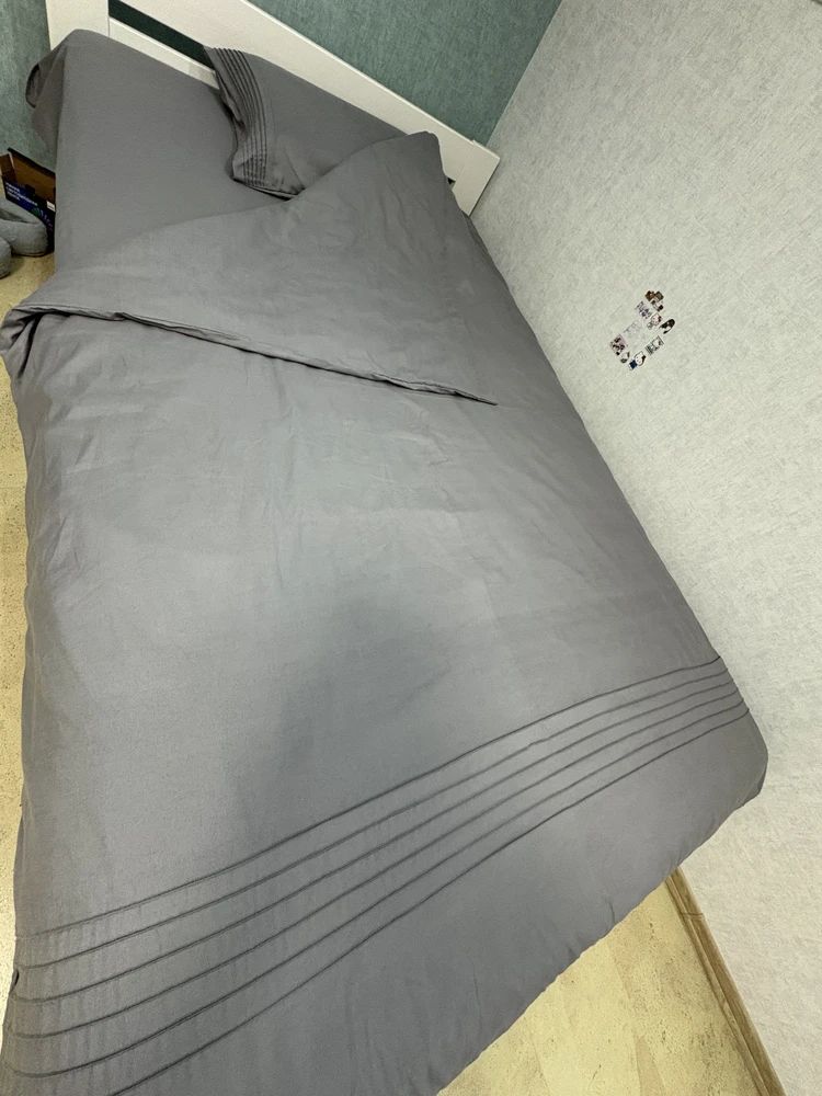 хорошо стирается и гладить не нужно, и это огромный плюс. не линяет и не садится при стирке. планирую м в дальнейшем прикупить ещё несколько комплектов