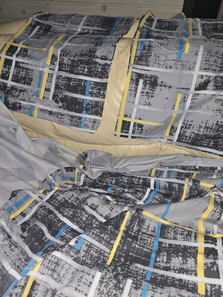 Качественно пошит, ткань средней плотности, посмотрим, что будет после стирки. Первое впечатление хорошее.