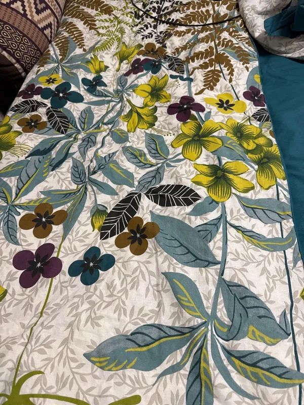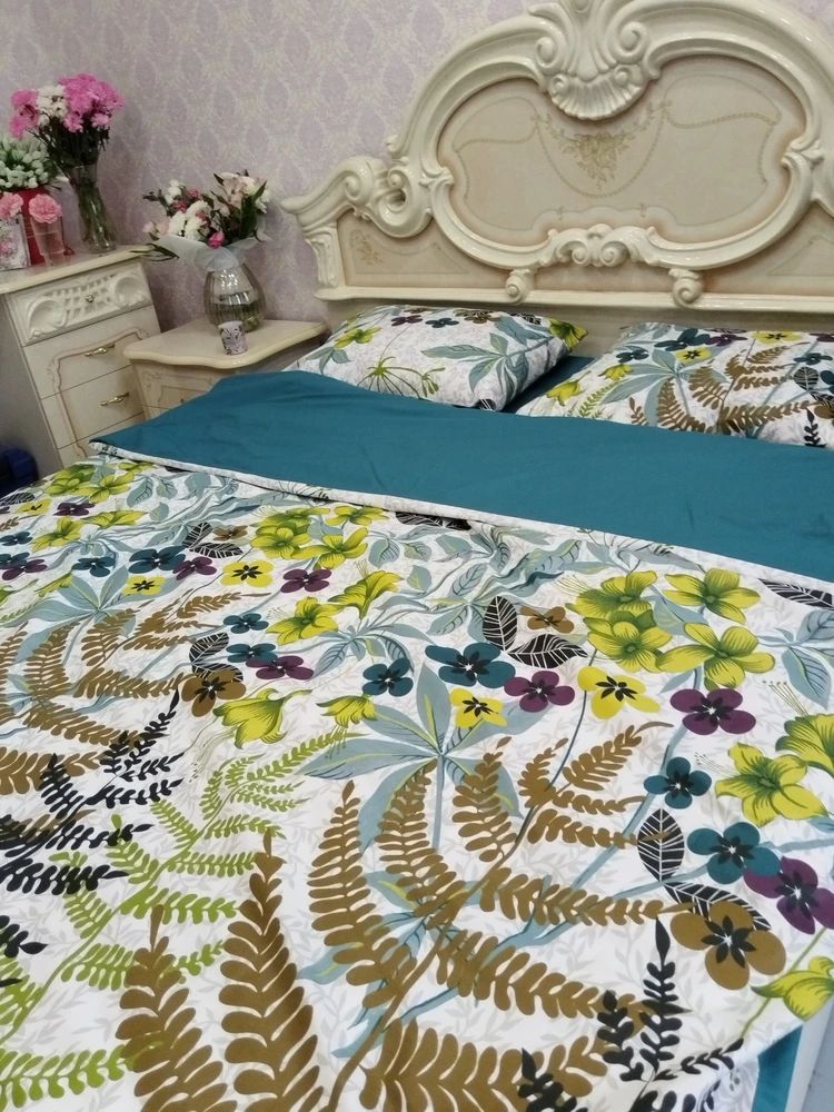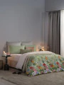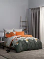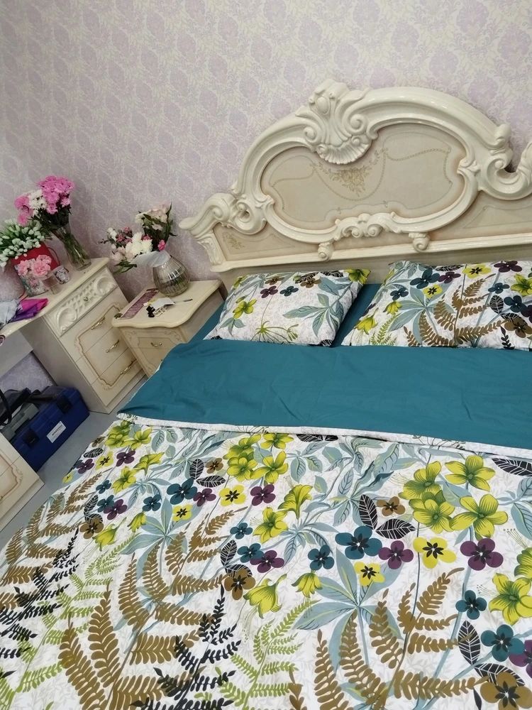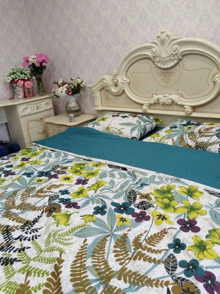 Двусторонний дизайн постельного белья позволяет легко менять облик спальни по вашему желанию. Комплект впечатляет своим ярким и живописным дизайном. Он оформлен в насыщенных природных оттенках от глубокого зеленого до теплого коричневого, что создает ощущение свежести и гармонии. Основной узор состоит из разнообразных зелёных листьев и ярких цветов, которые придают комплекту экзотический и жизнерадостный вид. Эти элементы создают атмосферу, напоминающую о лете и природе, наполняя пространство уютом и легкостью. Такой комплект идеально подходит для создания расслабляющей обстановки в спальне, способствуя хорошему сну и отдыху. Он станет великолепным акцентом в интерьере, подчеркивающим вашу индивидуальность и привносящим нотки стиля.