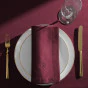Насыщенный винный оттенок «Делюме» сделает любой интерьер более ярким, а оформление праздничного стола неординарным и эффектным. Салфетки украсят любое торжество. Края изделия подчеркивает изящная вышивка, обрамляющая его по периметру, ткань также украшена вышитым логотипом Togas.